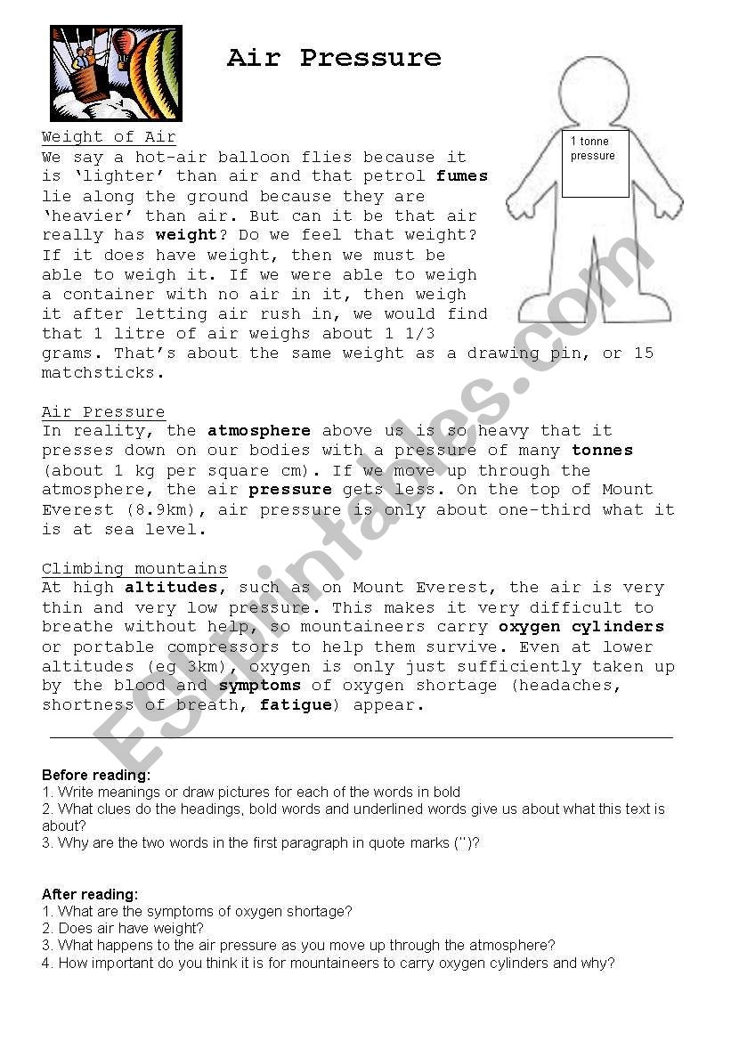 Air Pressure Reading ESL Worksheet By Evergreen Worksheets Library