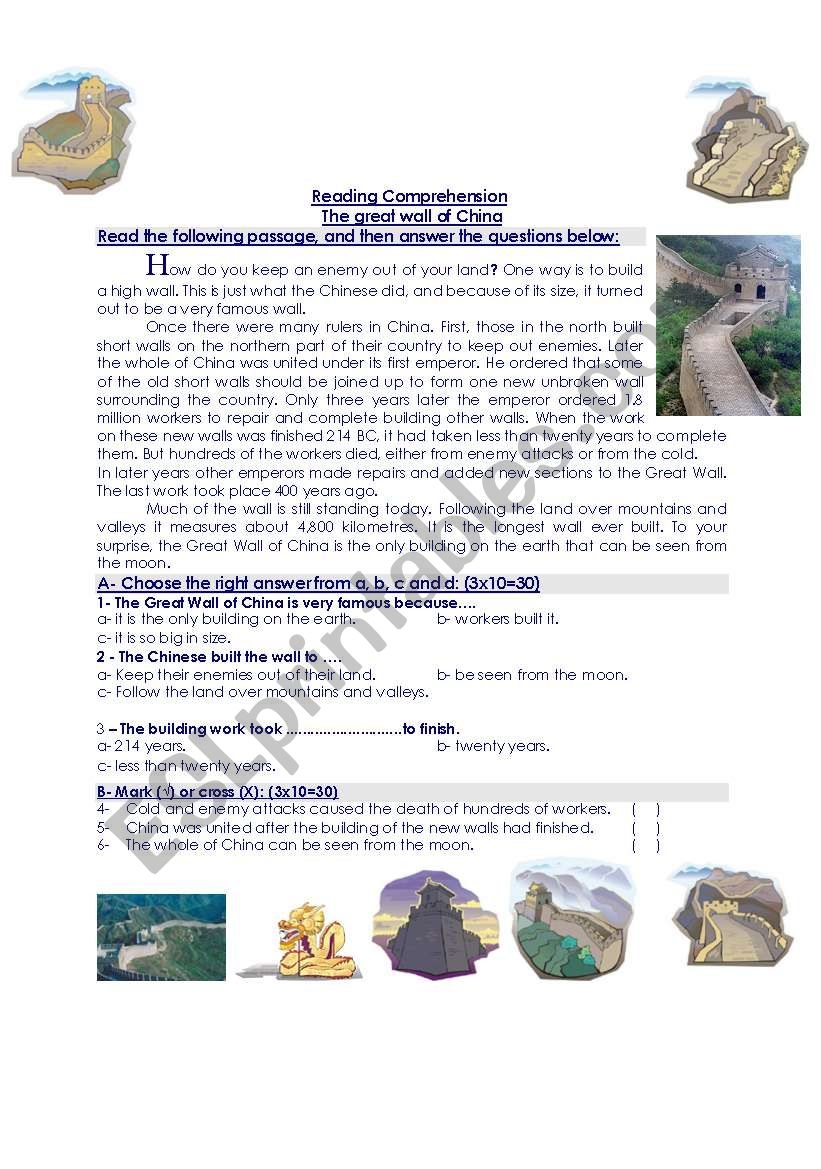With this worksheet, students can test their reading comprehension skills while also expanding their knowledge of Ancient China. From multiple-choice questions to fill-in-the-blank exercises, there is something for everyone in this comprehensive resource.
