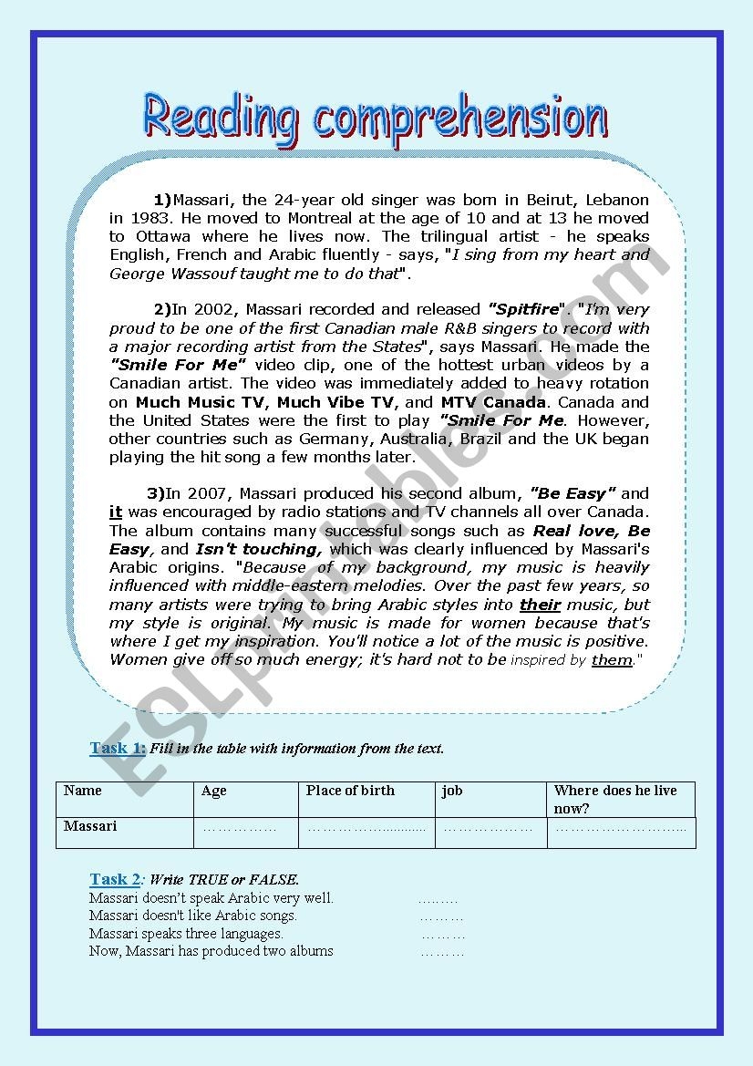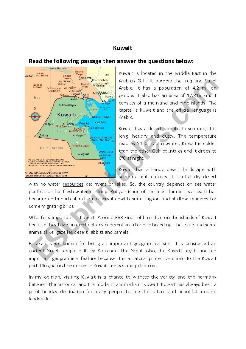 Reading Comprehension Kuwait ESL Worksheet By Ahlam