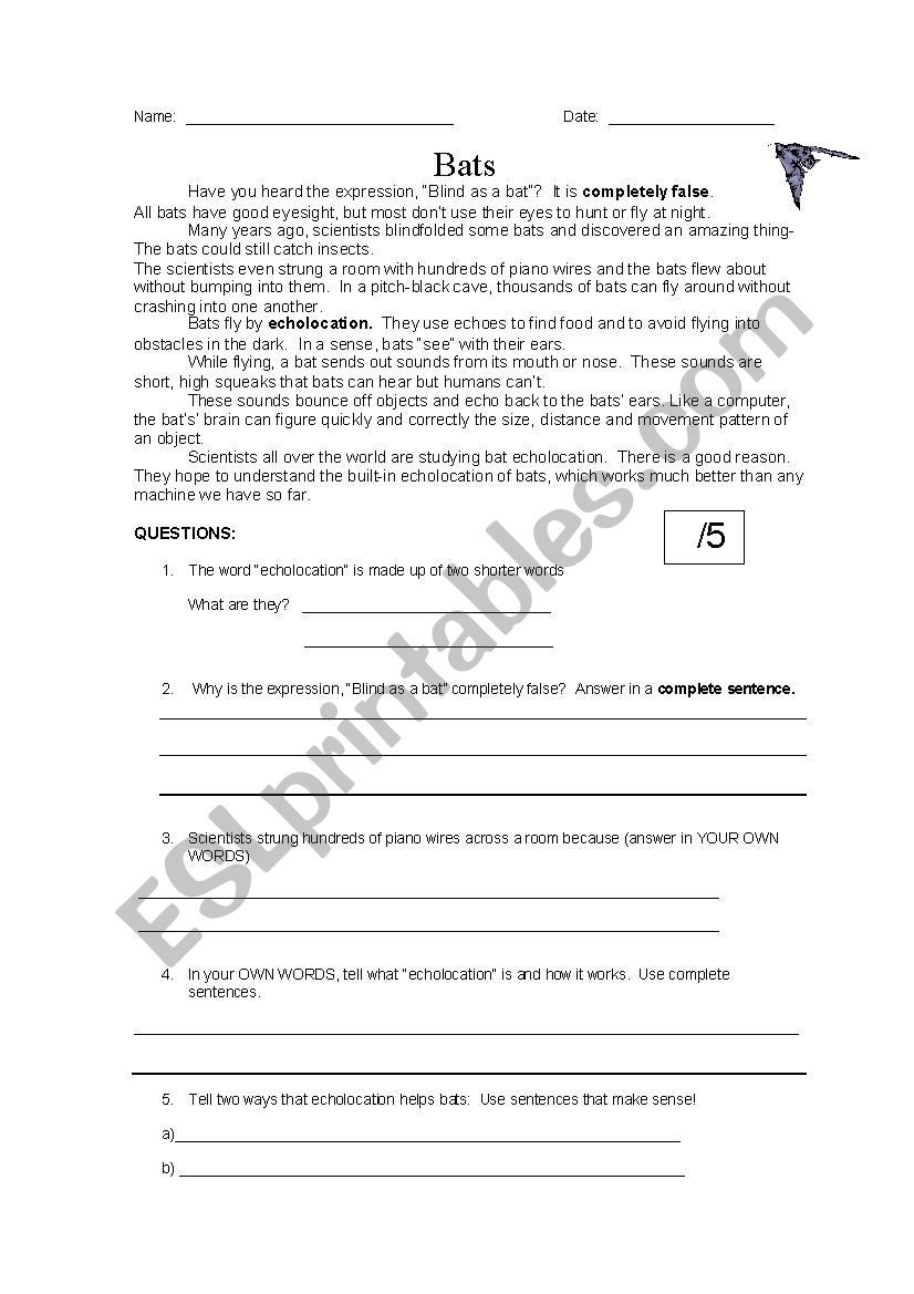 Bats Reading Comprehension ESL Worksheet By Laurieann