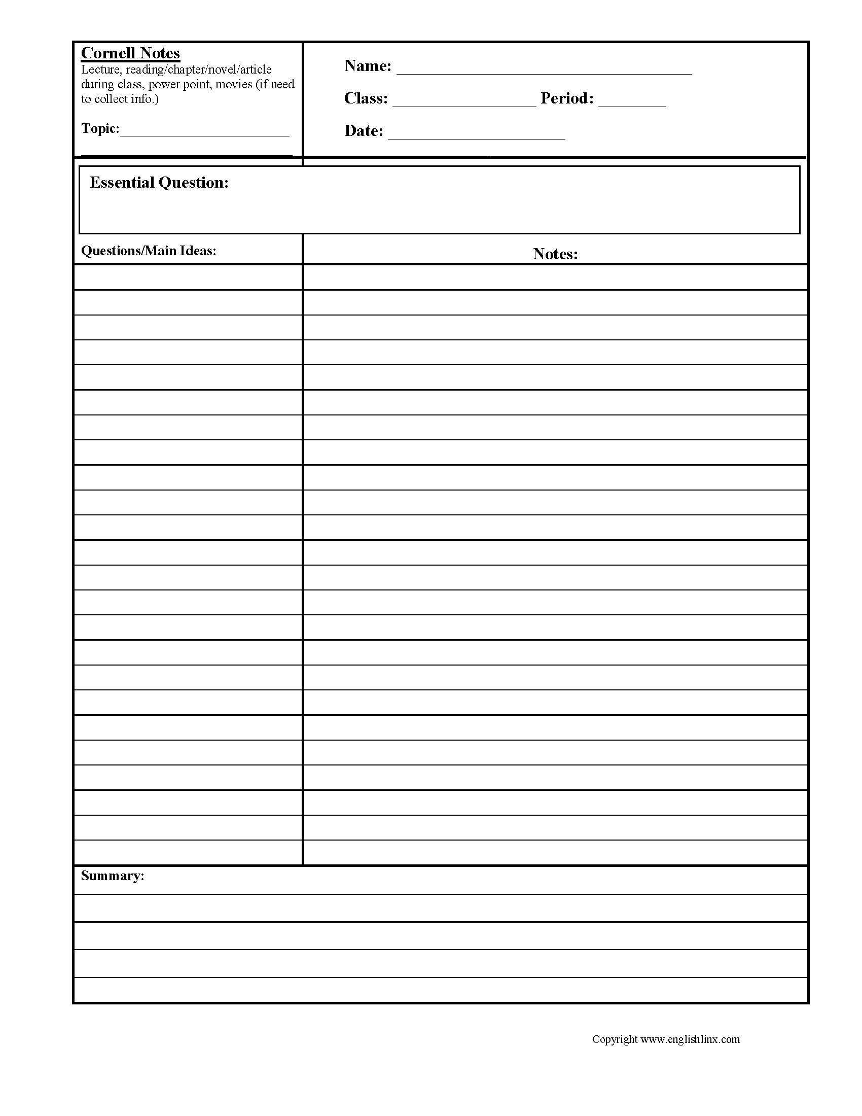 Reading Comprehension Worksheets Cornell Notes Comprehension