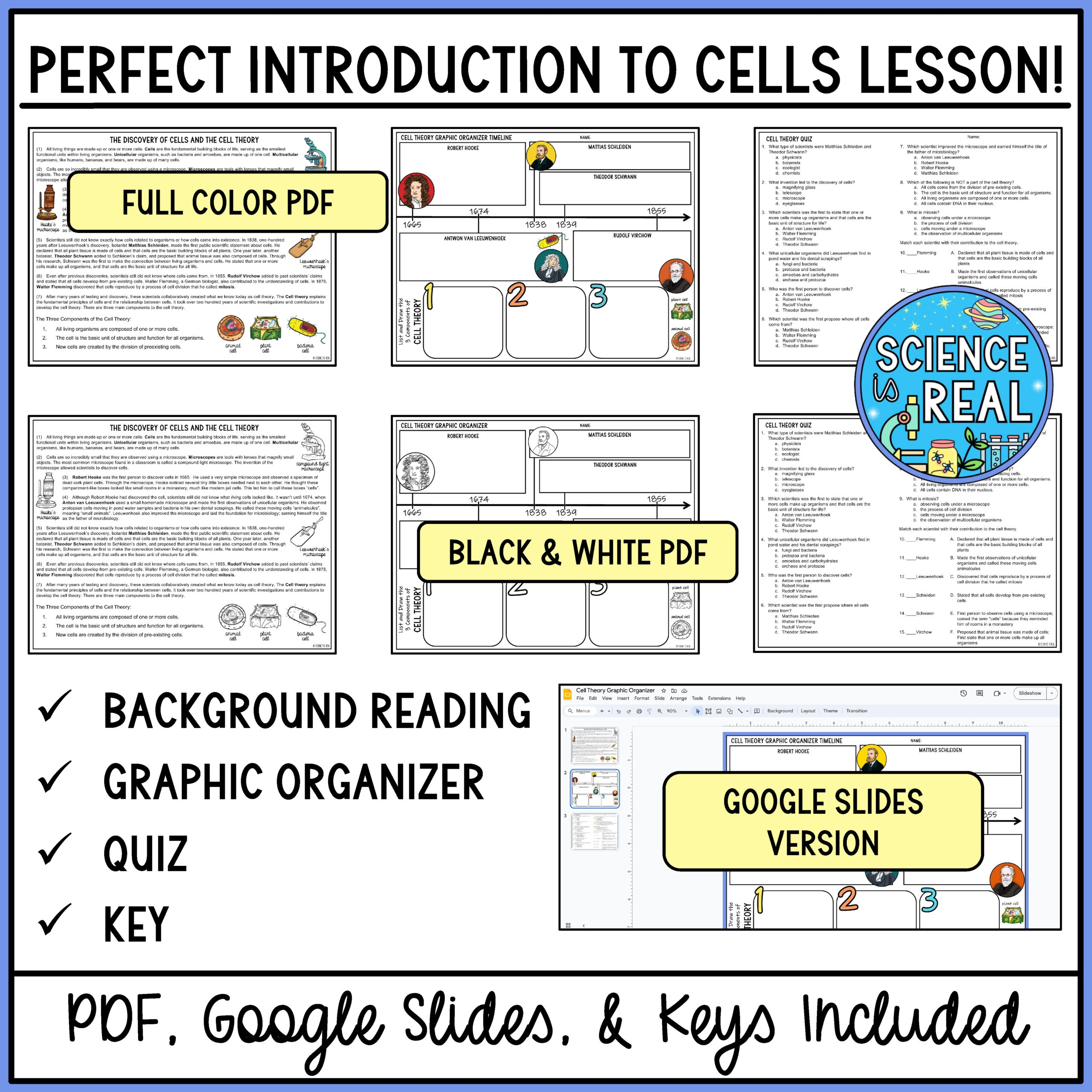Cell Theory Graphic Organizer With Reading Comprehension And Quiz