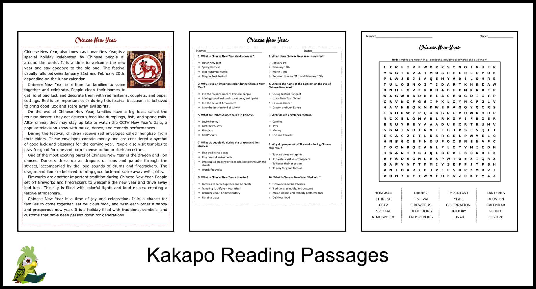 Chinese New Year Reading Comprehension And Word Search Teaching Resources