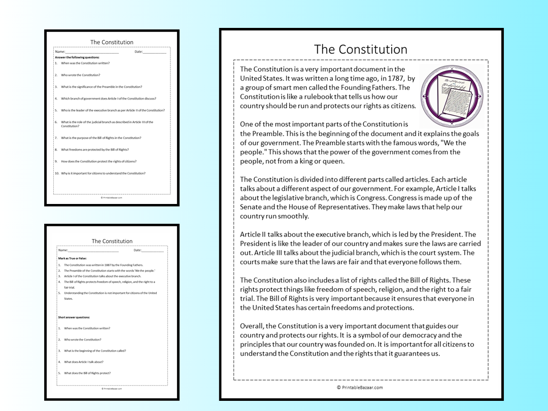 Enhance Learning with our Constitution Reading Comprehension Worksheet Pdf