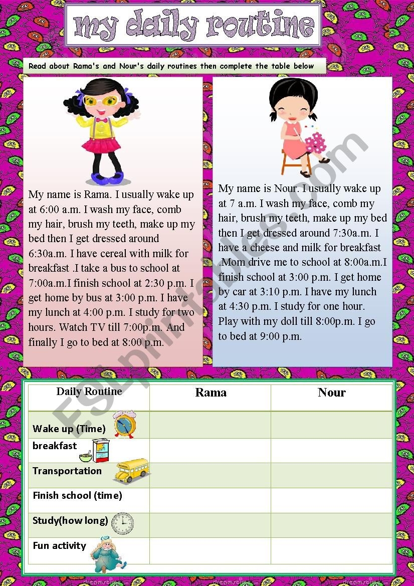 READING COMPREHENSION MILLEY S DAILY ROUTINE ESL Worksheet By Worksheets Library