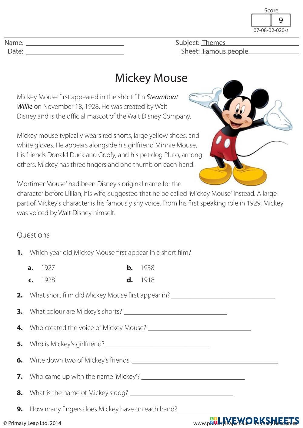 Disney Reading Comprehension Worksheets Pdf