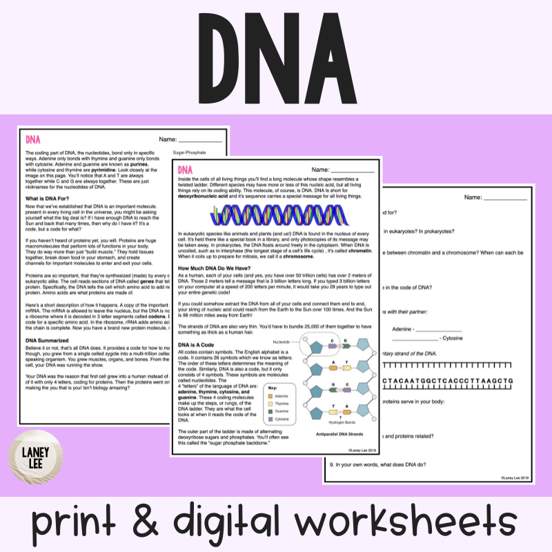 DNA Reading Comprehension Passage Printable Worksheet Teaching Resources