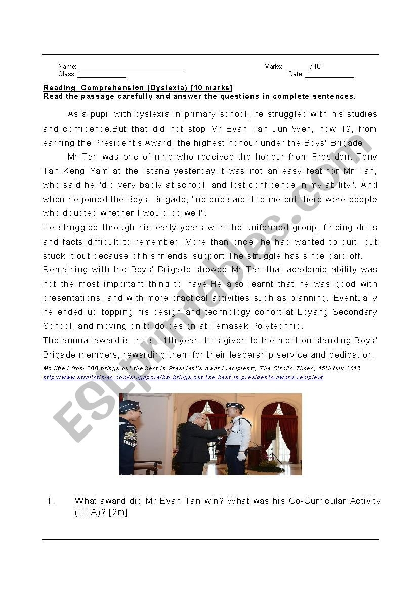 Reading Comprehension Dyslexia ESL Worksheet By Soulsensei