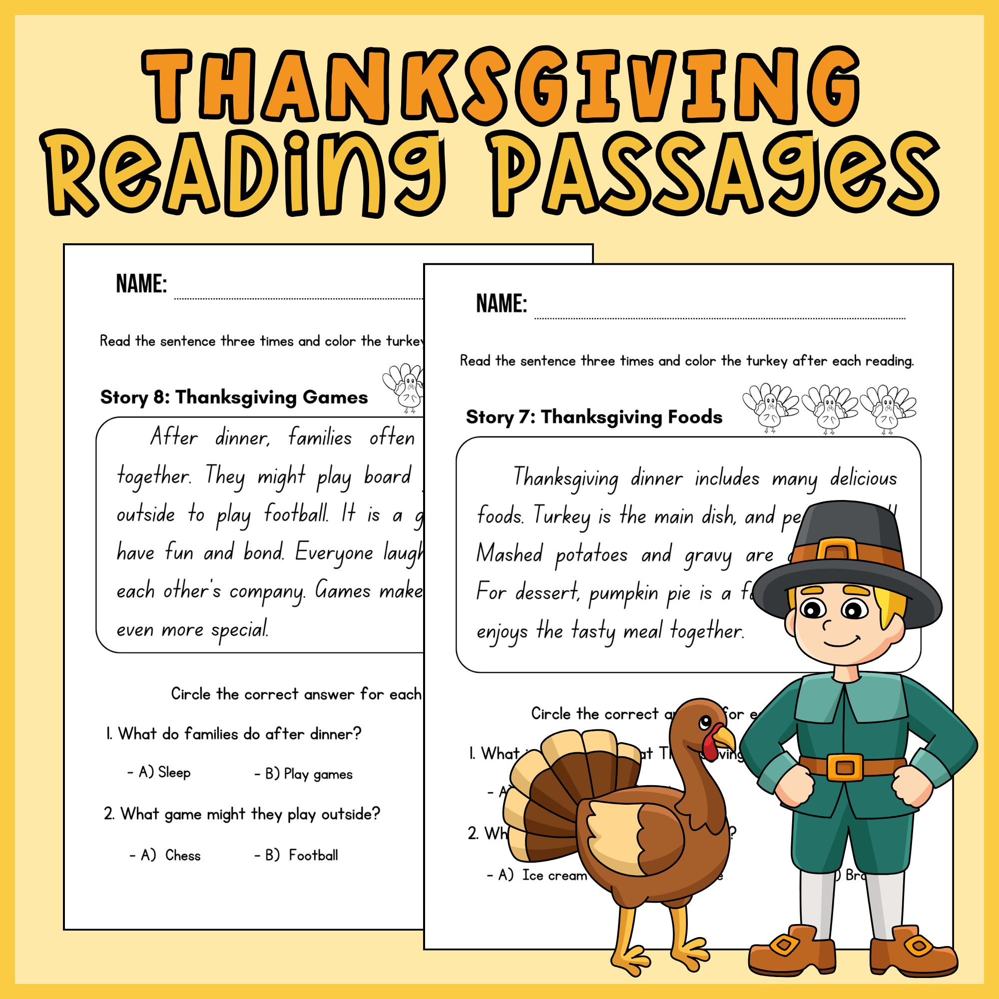 Fun Thanksgiving Easy Reading Comprehension Worksheets For 1st 3rd