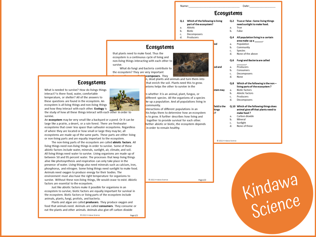 Ecosystems Reading Comprehension Passage And Questions PDF Teaching Resources
