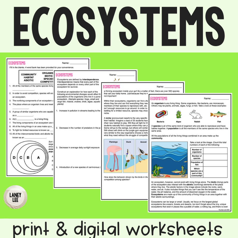 Ecosystems Worksheets