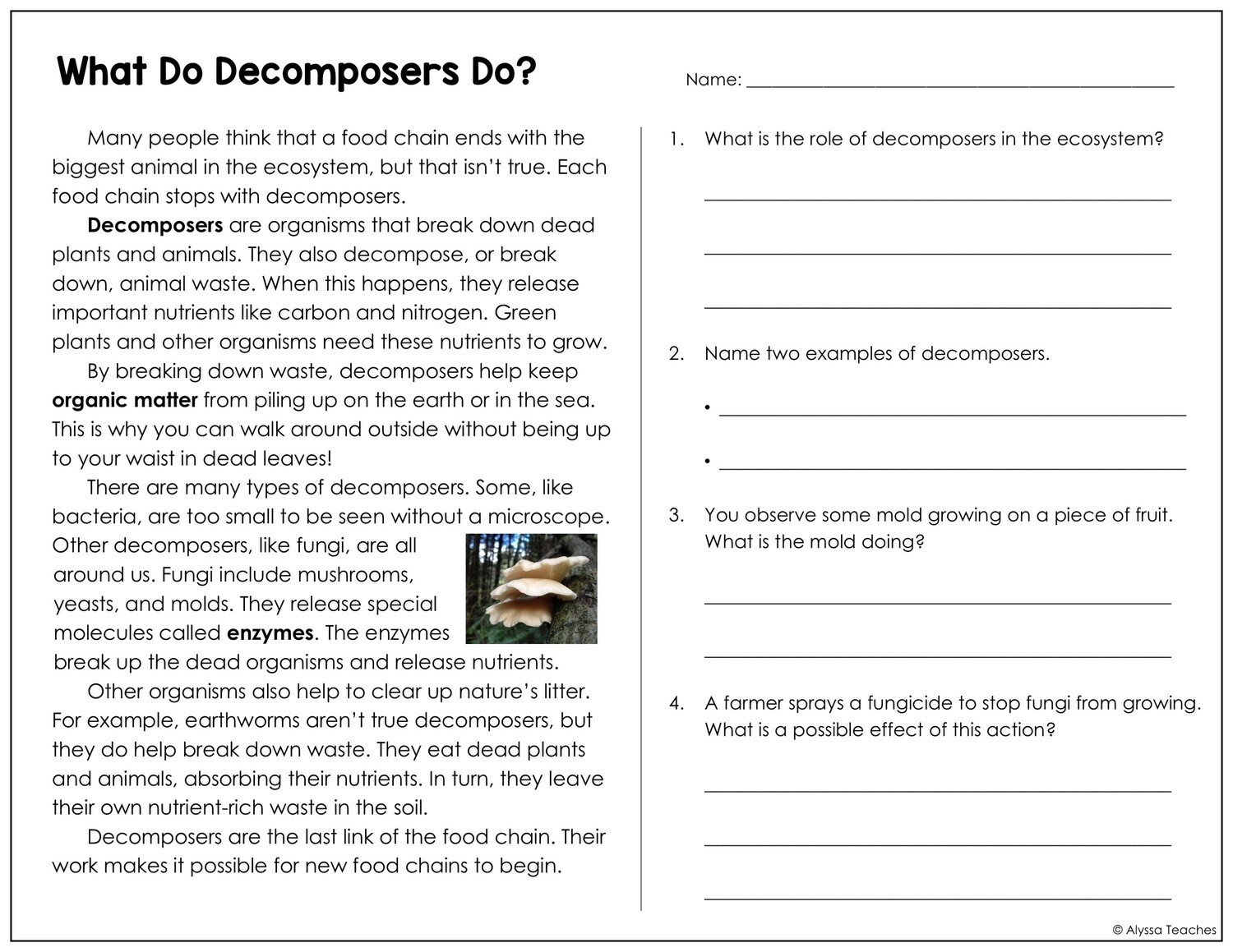 Ecosystem Reading Comprehension Worksheets