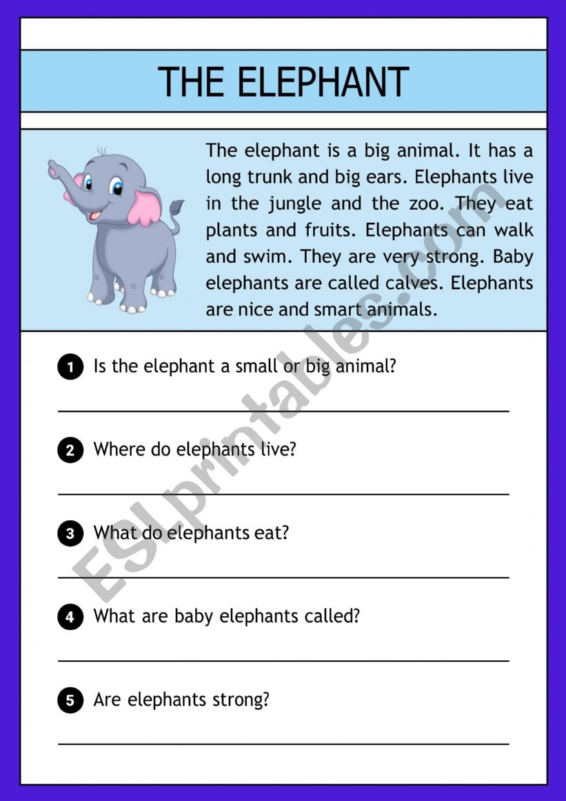 With this worksheet, students can improve their ability to read and understand text, answer questions based on what they have read, and even learn new vocabulary words related to elephants. It is a great way to engage students in learning about these magnificent animals.