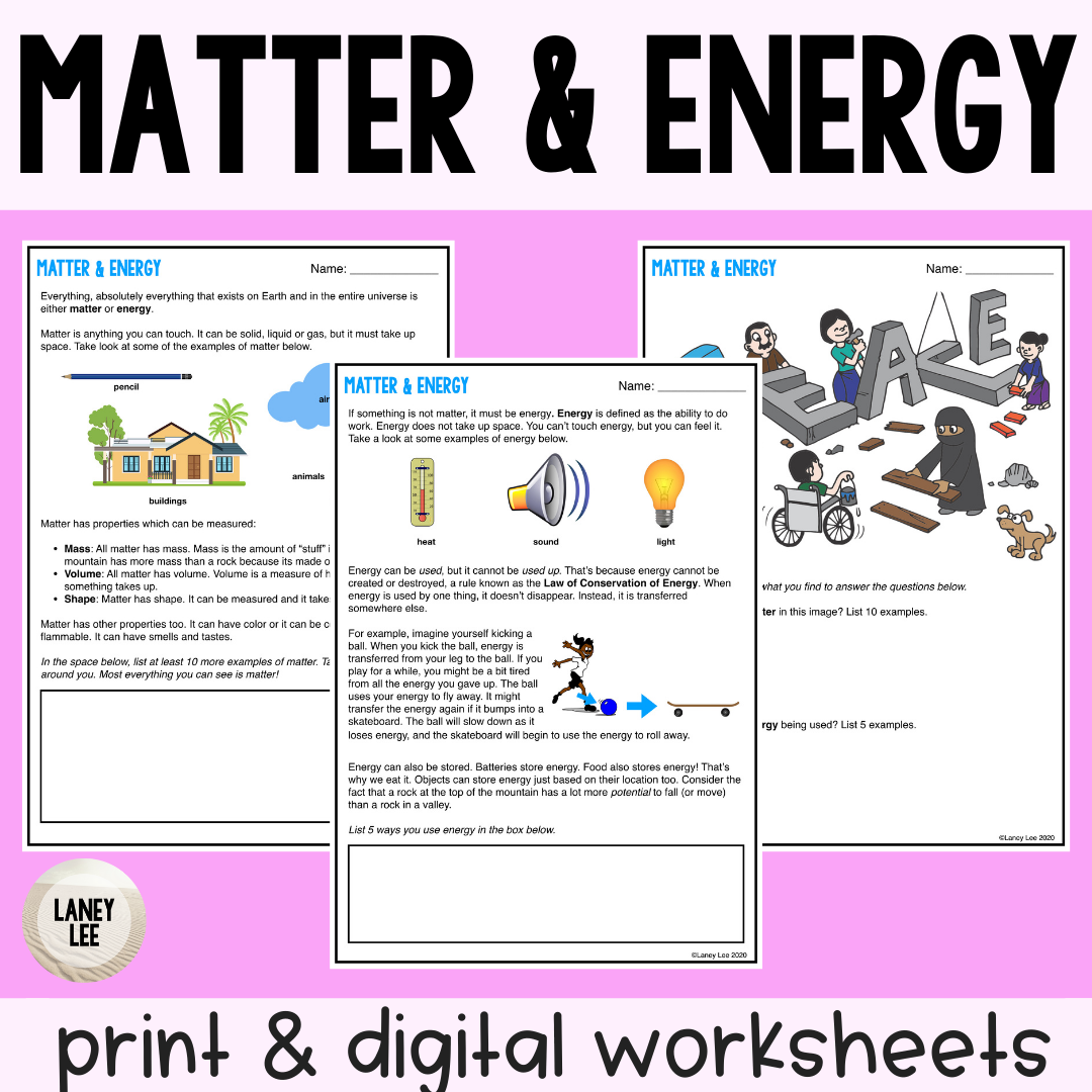 Matter U0026 Energy Reading Comprehension Worksheets Laney Lee