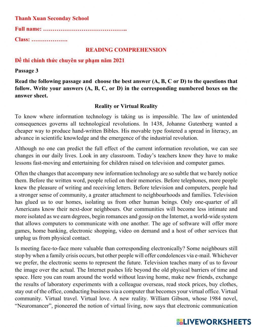 Reading Comprehension For Advanced Students ESL Worksheet By Jr agildo