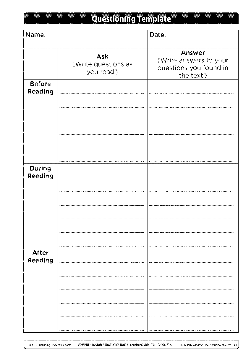 Reading Comprehension Formulating Questions