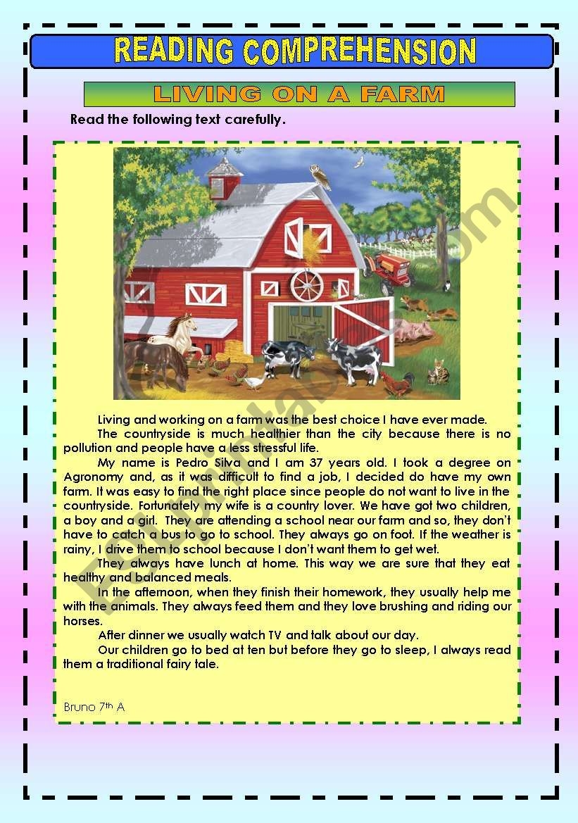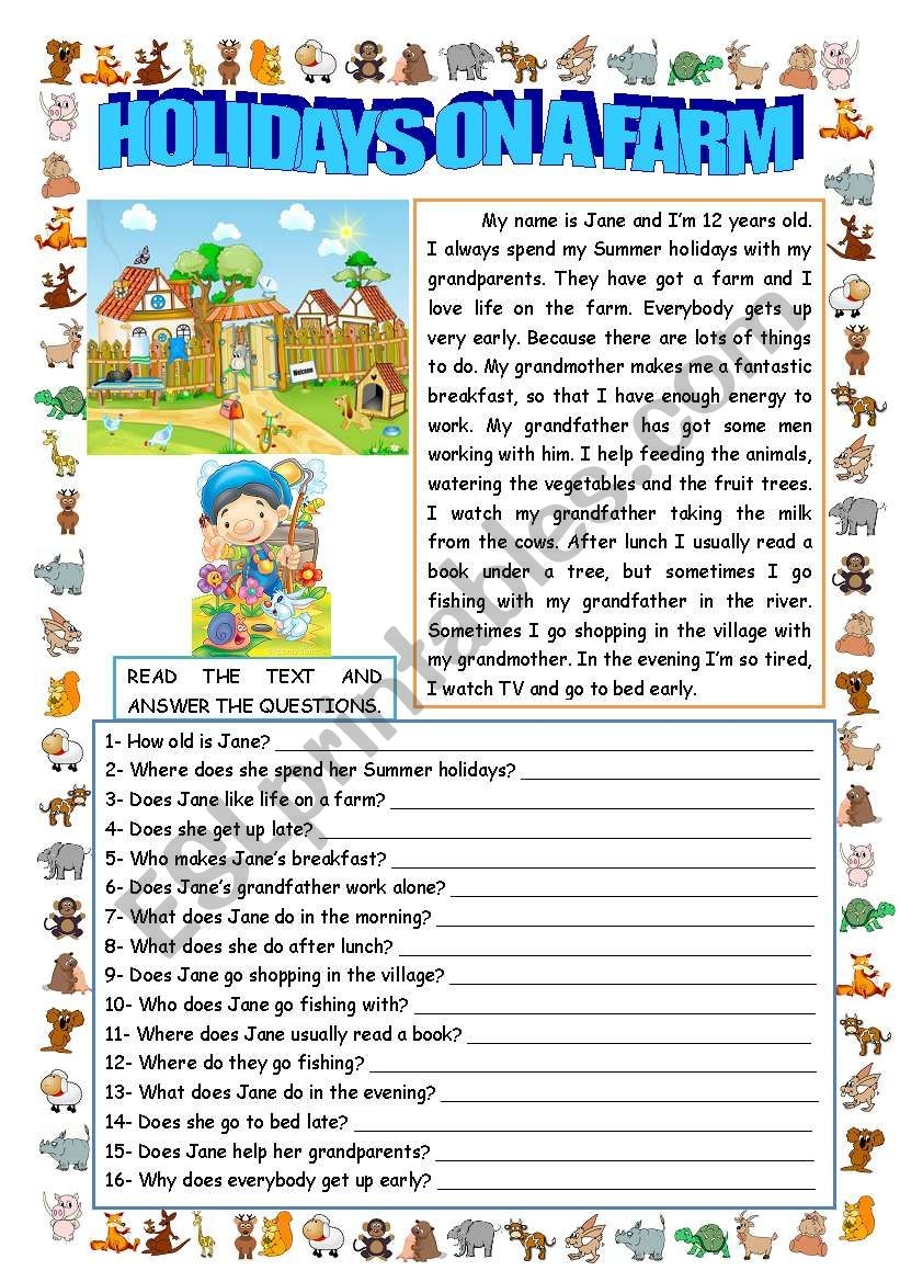 HOLIDAYS ON A FARM READING AND COMPREHENSION ESL Worksheet By Sandytita