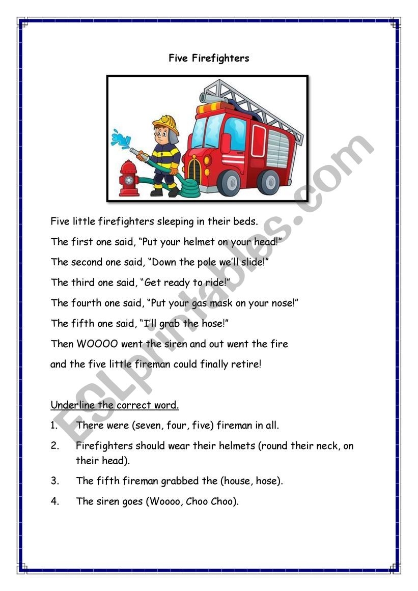 Are you looking for fun and engaging ways to improve reading comprehension skills for kids? Look no further than firefighter reading comprehension worksheets! These worksheets not only help kids develop their reading skills but also introduce them to the important work of firefighters.