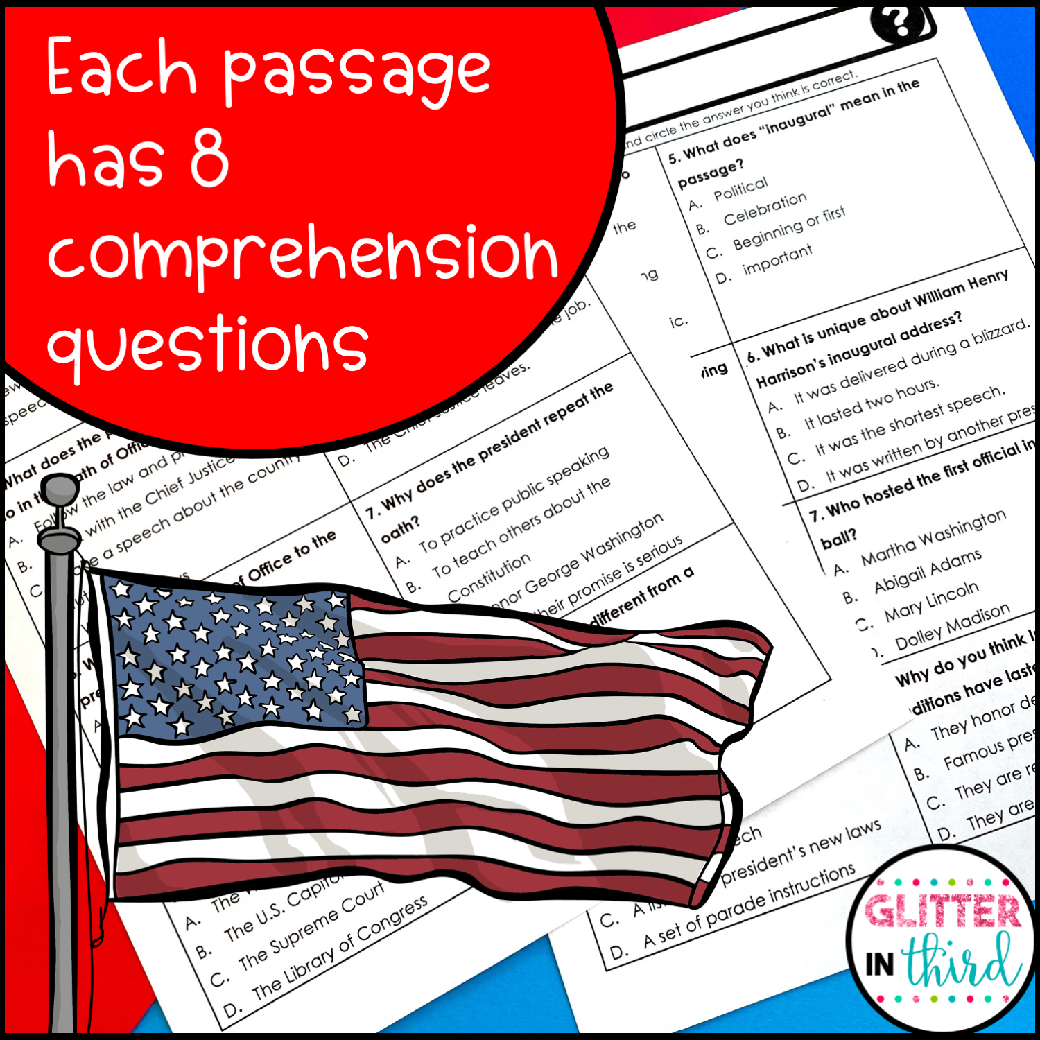 Inauguration Day Reading Comprehension Activities Passages Worksheets Glitter In Third