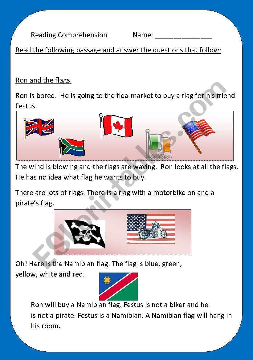 Flag Day Reading Comprehension Worksheets