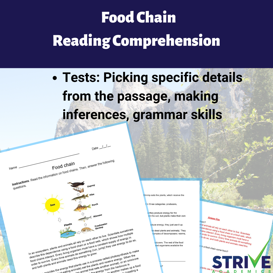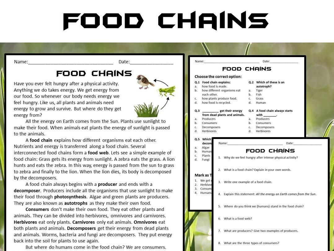 Food Chains Reading Comprehension Passage And Questions PDF Teaching Resources