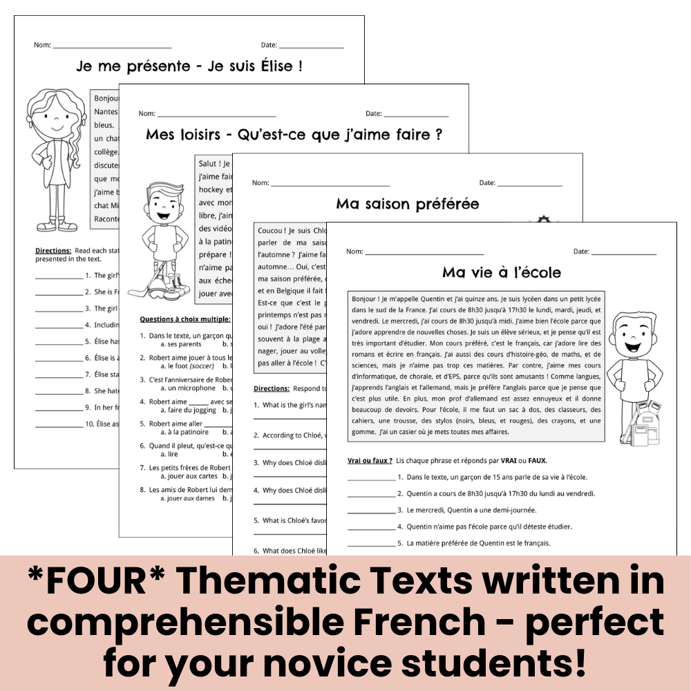 Basic French Reading Comprehension french Learning Classroom