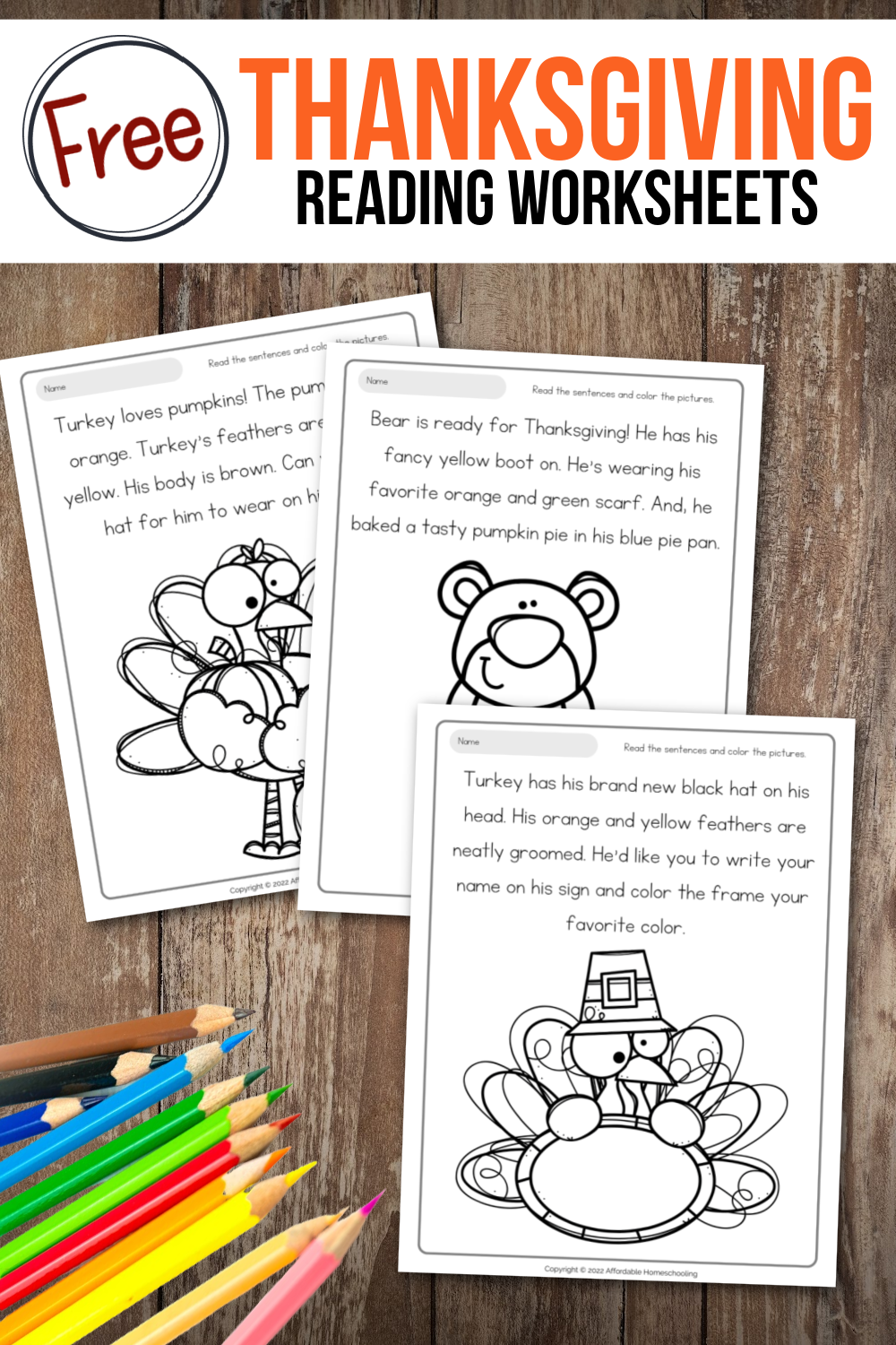 Free Printable Thanksgiving Reading Worksheets