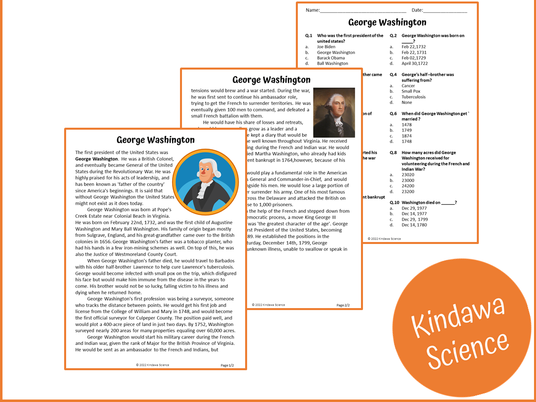 George Washington Reading Comprehension Passage And Questions PDF Teaching Resources