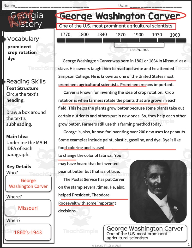 Nonfiction Reading Packet George Washington Carver By Teach Simple
