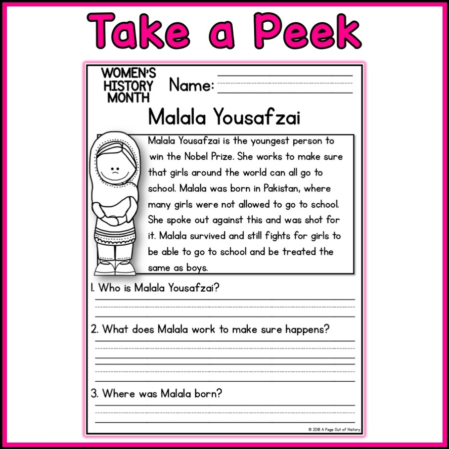 Womens History Month Social Studies Reading Comprehension Passages K 2 Worksheets Library