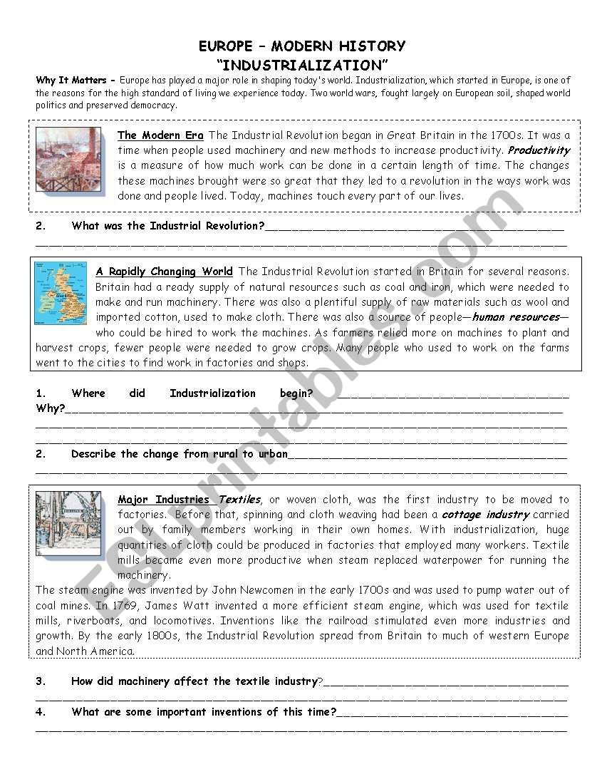 Industrial Revolution Reading ESL Worksheet By Aebbeler