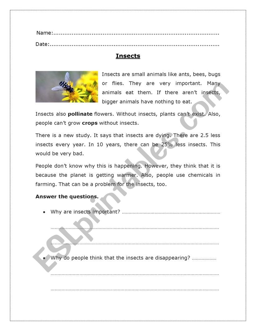 Insects Reading Comprehension ESL Worksheet By Lcaste22