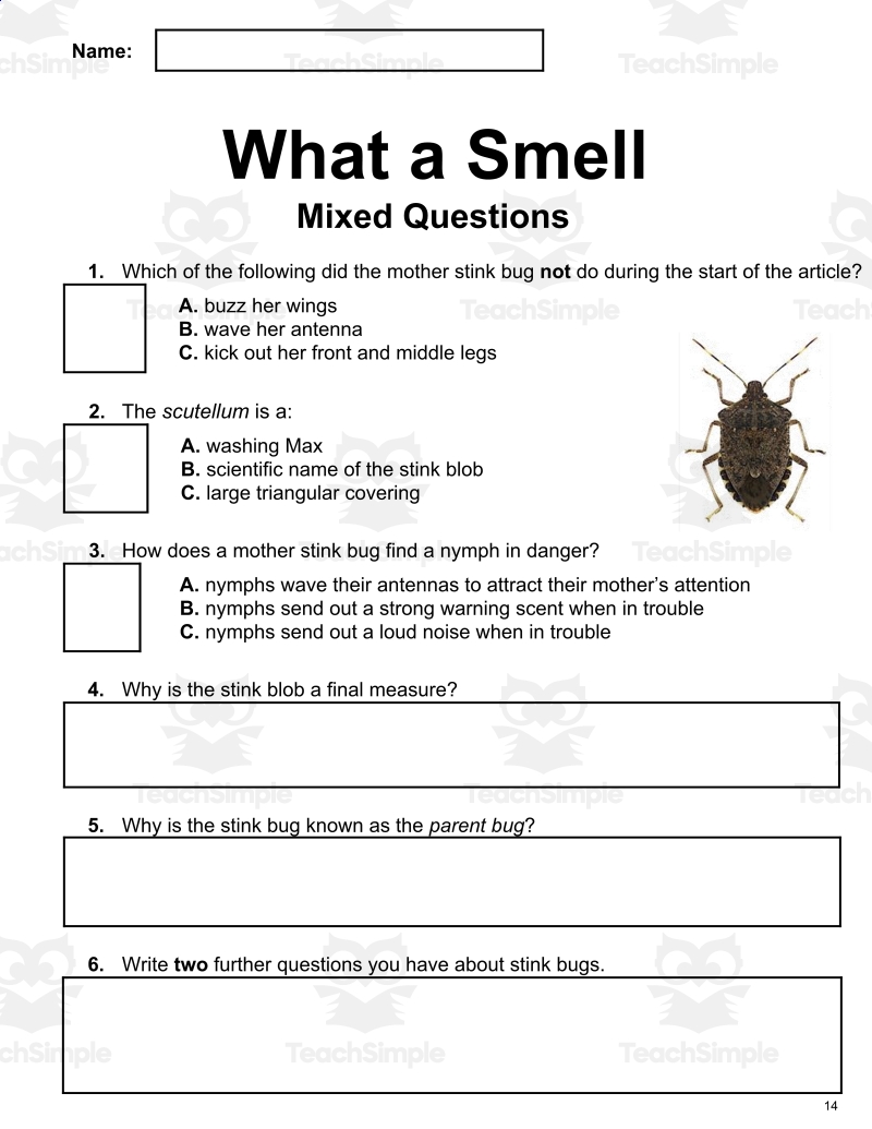 Insects Reading Comprehension Passage And Questions PDF Teaching Resources