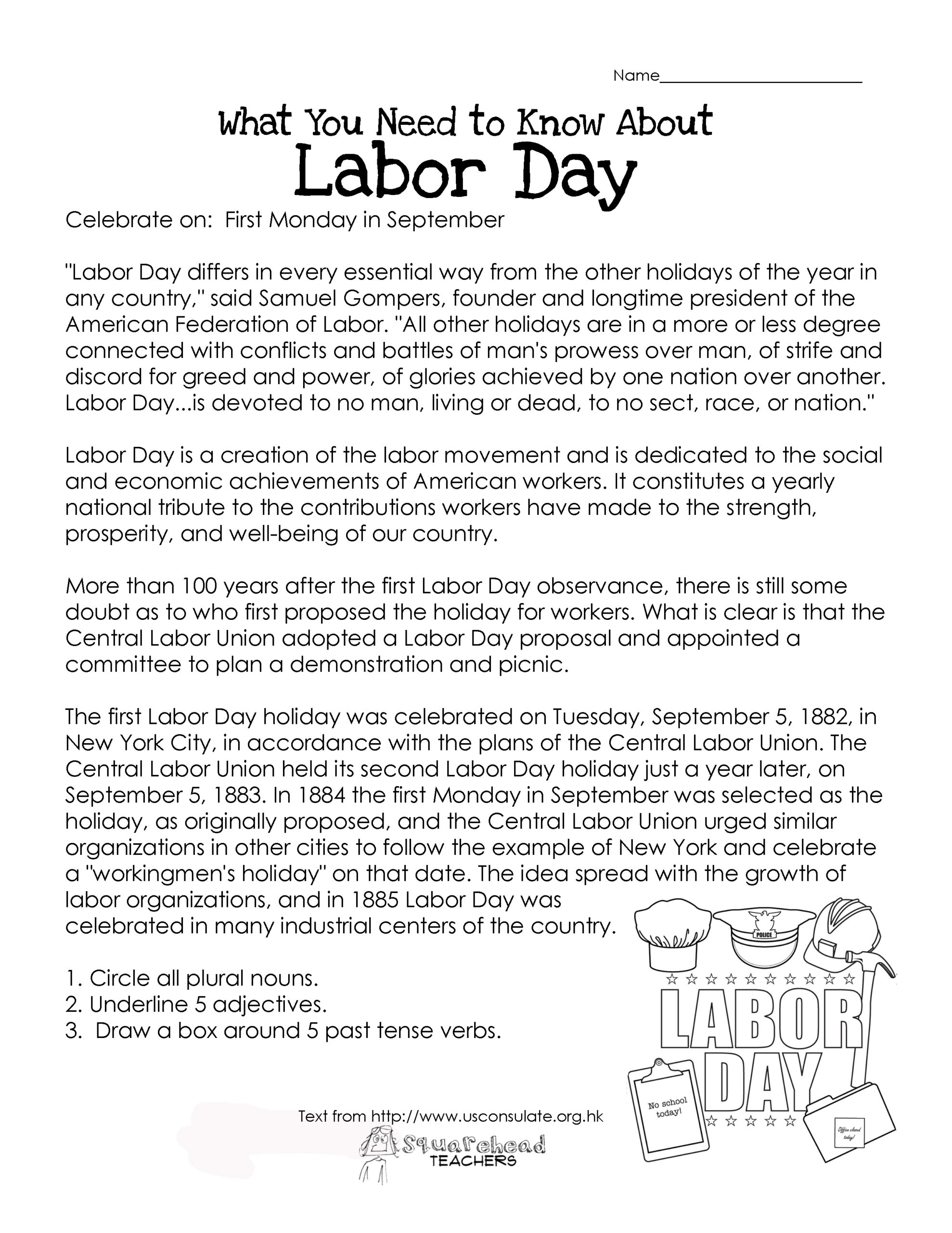 Labor Day What You Need To Know free Worksheet Squarehead