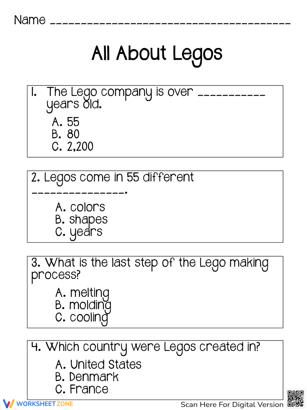 Each worksheet typically includes a short story or passage for your child to read, followed by questions that test their understanding of the text. As they answer the questions, they can also build related Lego creations to make the learning process even more interactive.
