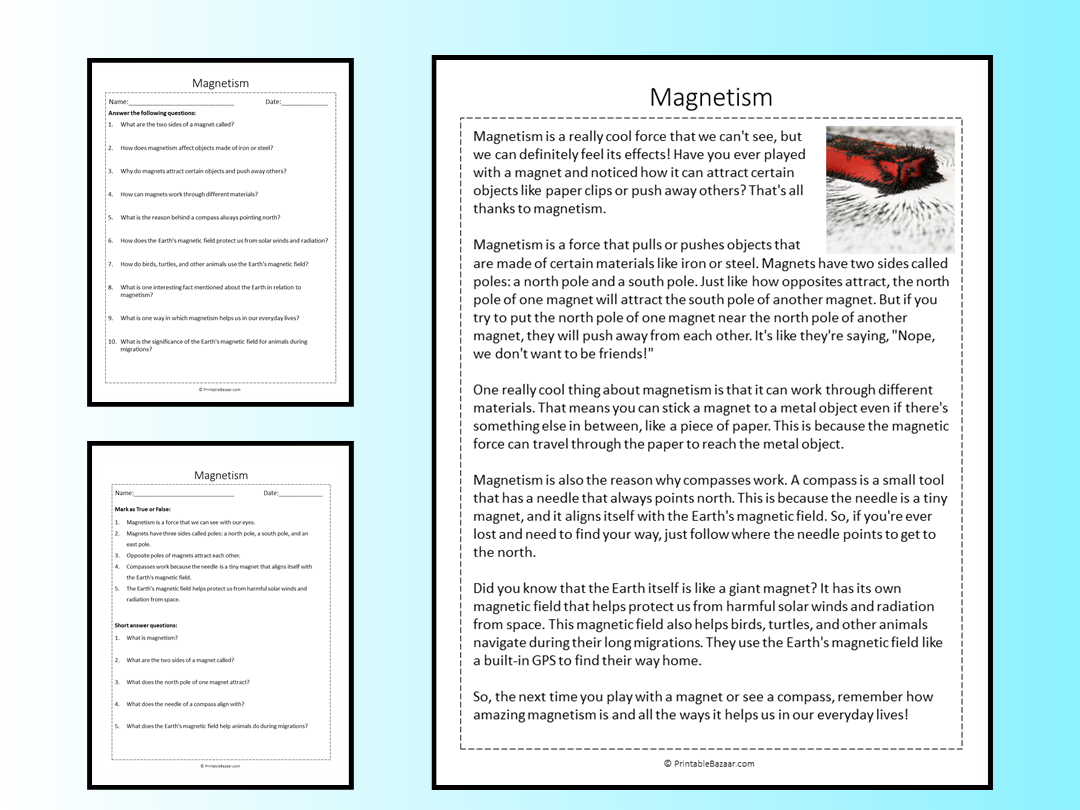 Magnetism Reading Comprehension Passage And Questions Worksheets Library
