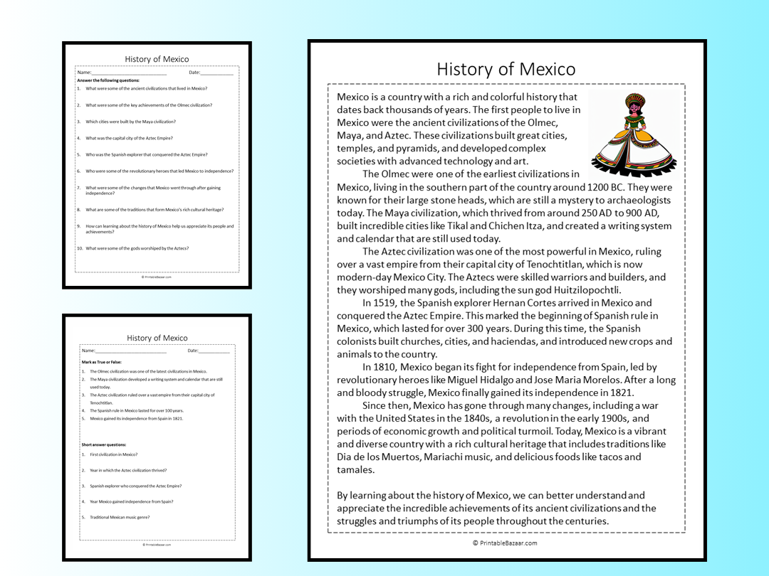 History Of Mexico Reading Comprehension Passage Printable Worksheet Teaching Resources