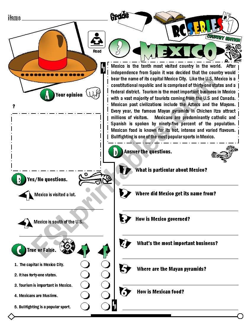 Mexico Reading Comprehension Worksheets
