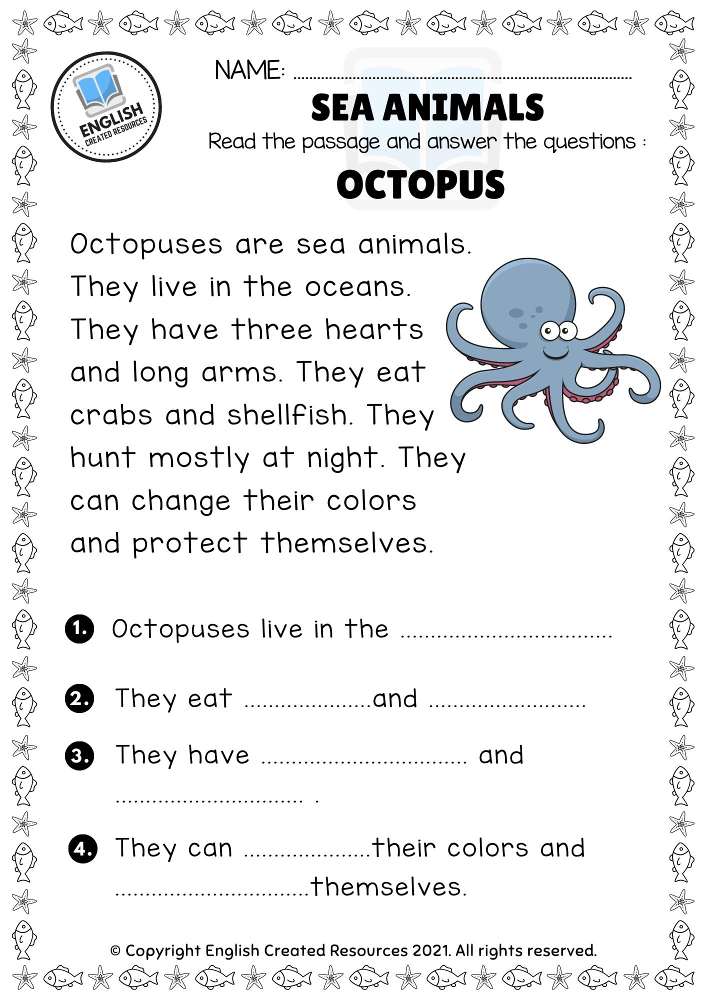 Each worksheet is carefully crafted to not only test reading comprehension but also spark curiosity and interest in the wonders of the ocean. Students will have the opportunity to learn new vocabulary, practice critical thinking skills, and explore different topics related to the marine world.