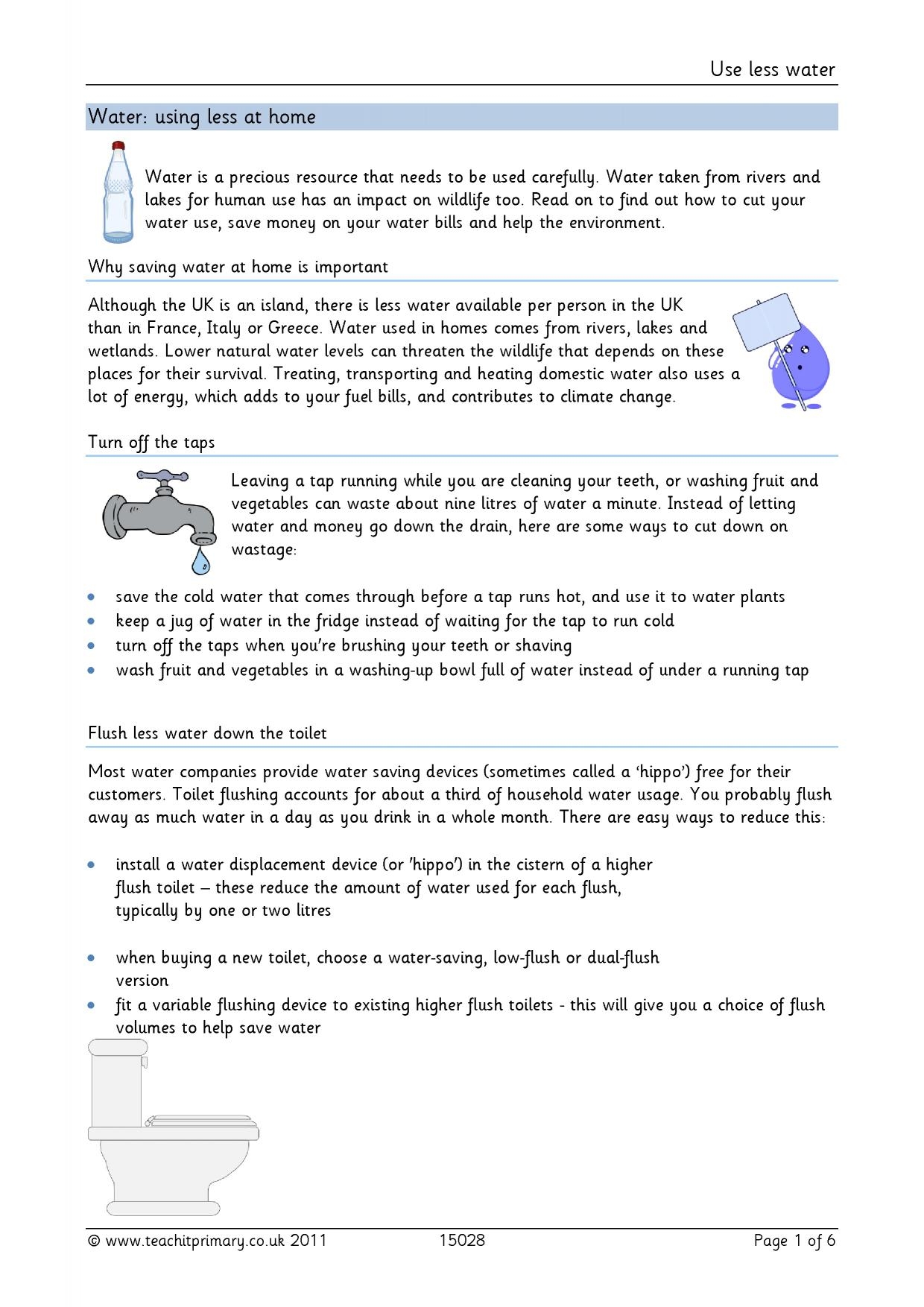 Use Less Water Persuasive Writing KS2 Teachit