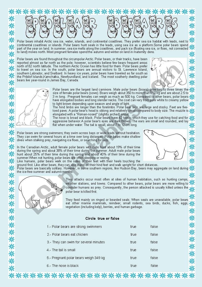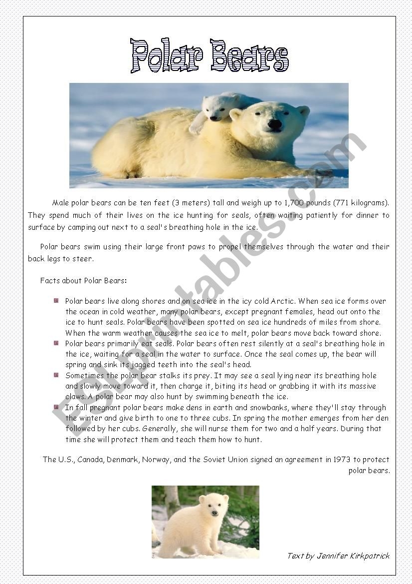 Polar Bears Nice Reading Comprehension ESL Worksheet By Jessisun