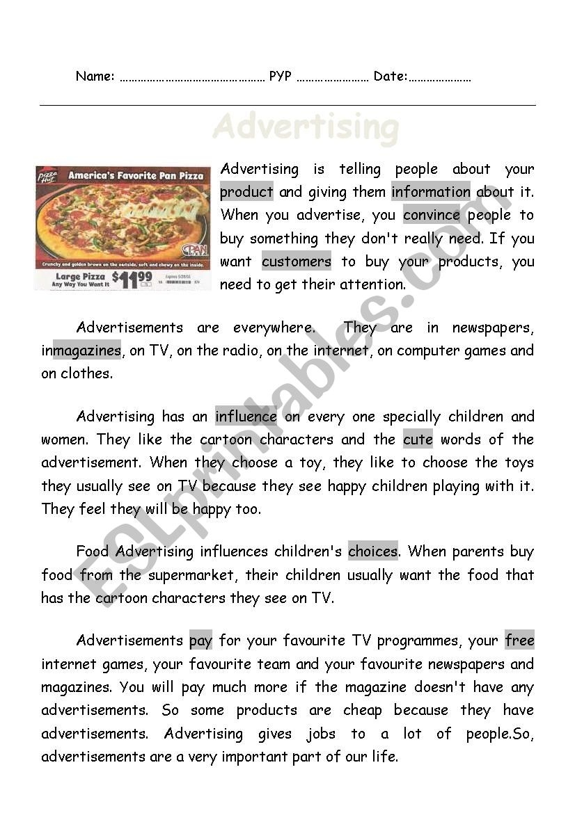 Advertising A Reading Passage ESL Worksheet By Mohamed Hamed