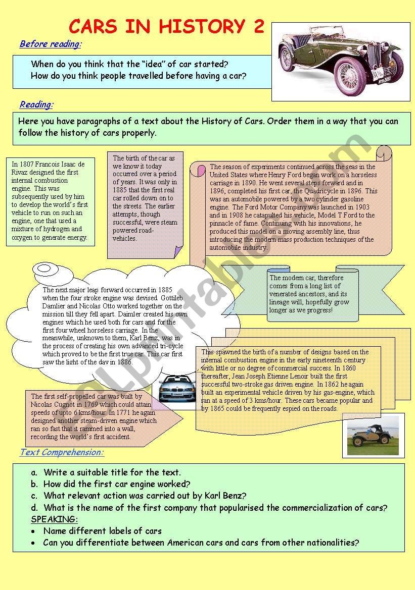 READING CARS IN HISTORY 2 2 2PAGES ESL Worksheet By Selali