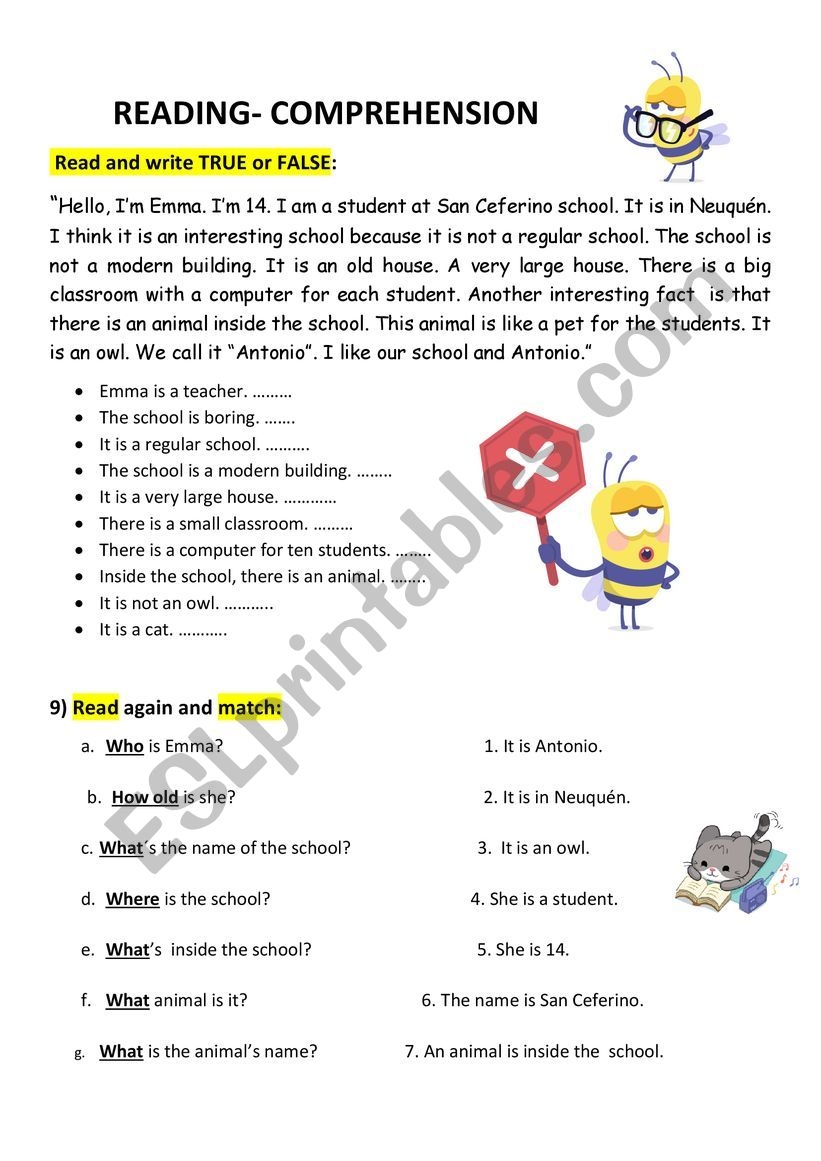 Reading Comprehension WH QUESTIONS ESL Worksheet By Miss Alejandra