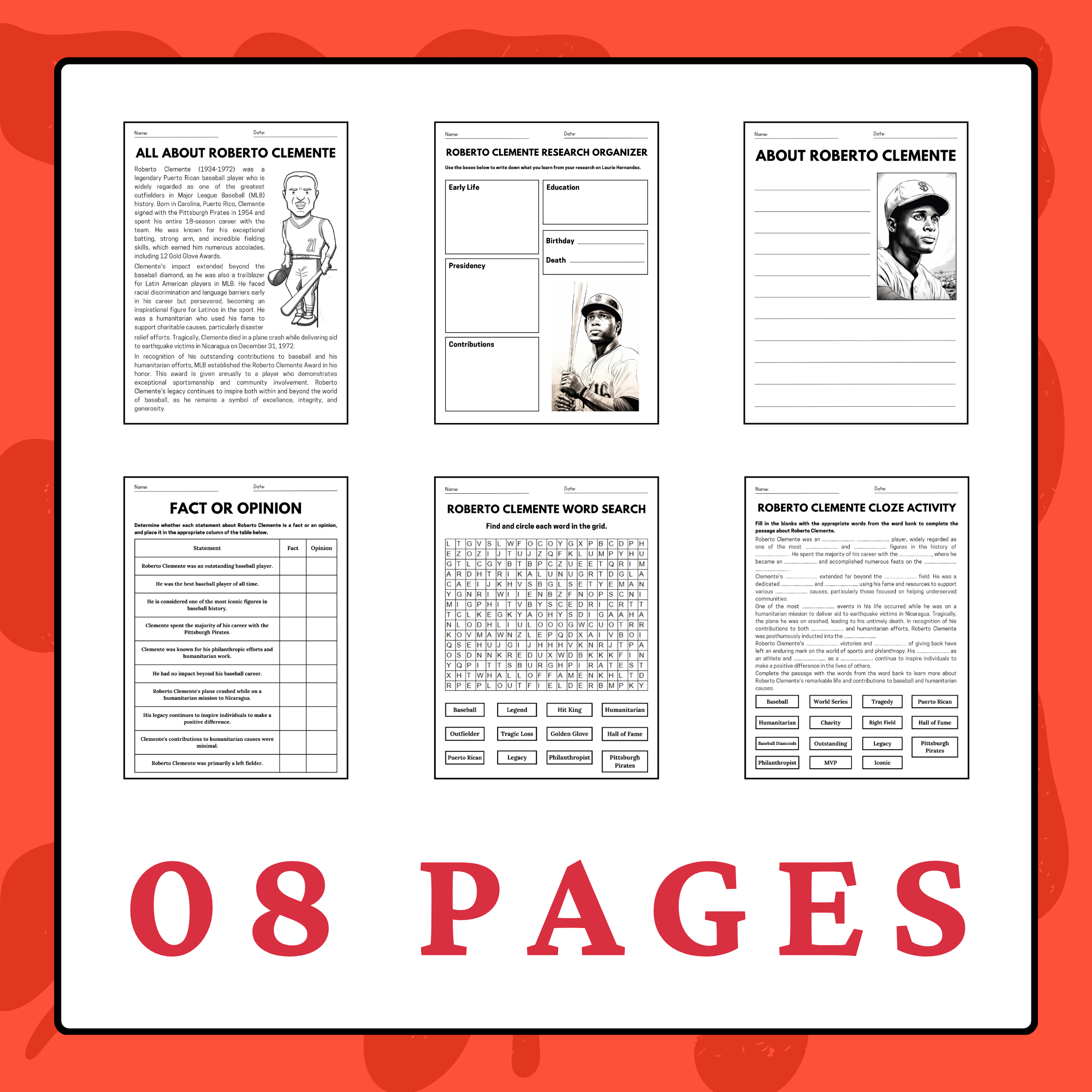 Roberto Clemente Reading Comprehension Worksheets