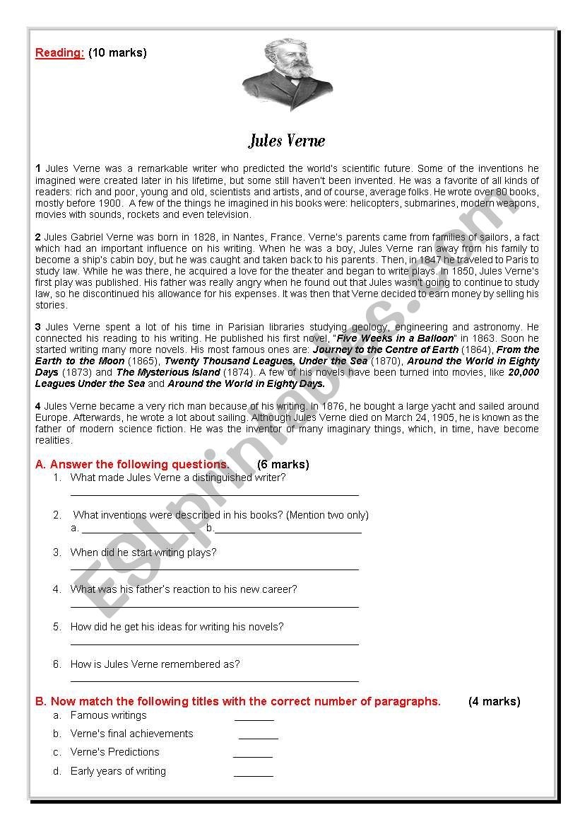 Reading Jules Verne The Father Of Modern Science Fiction ESL Worksheet By Emulator