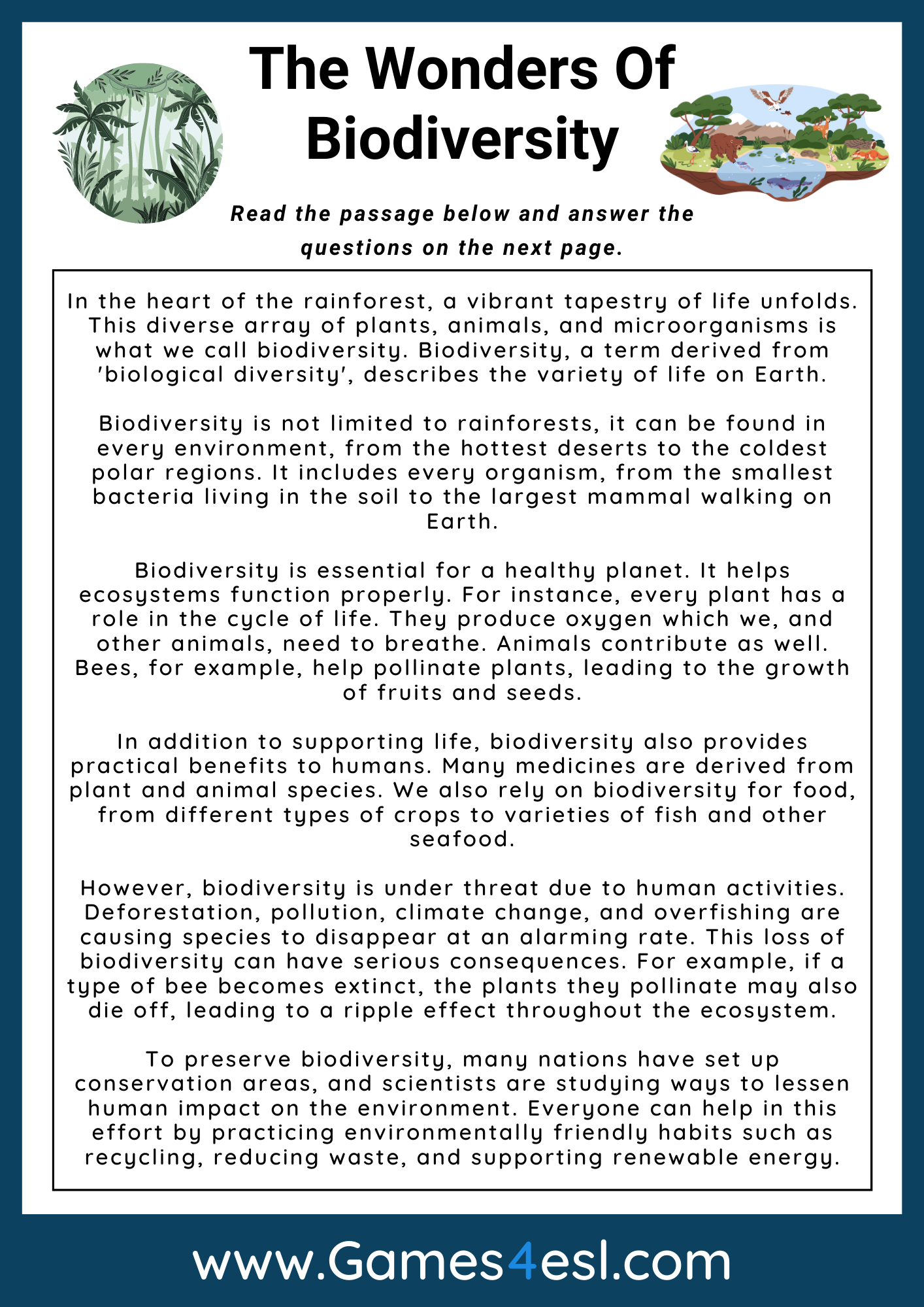 Biodiversity Reading Comprehension Games4esl