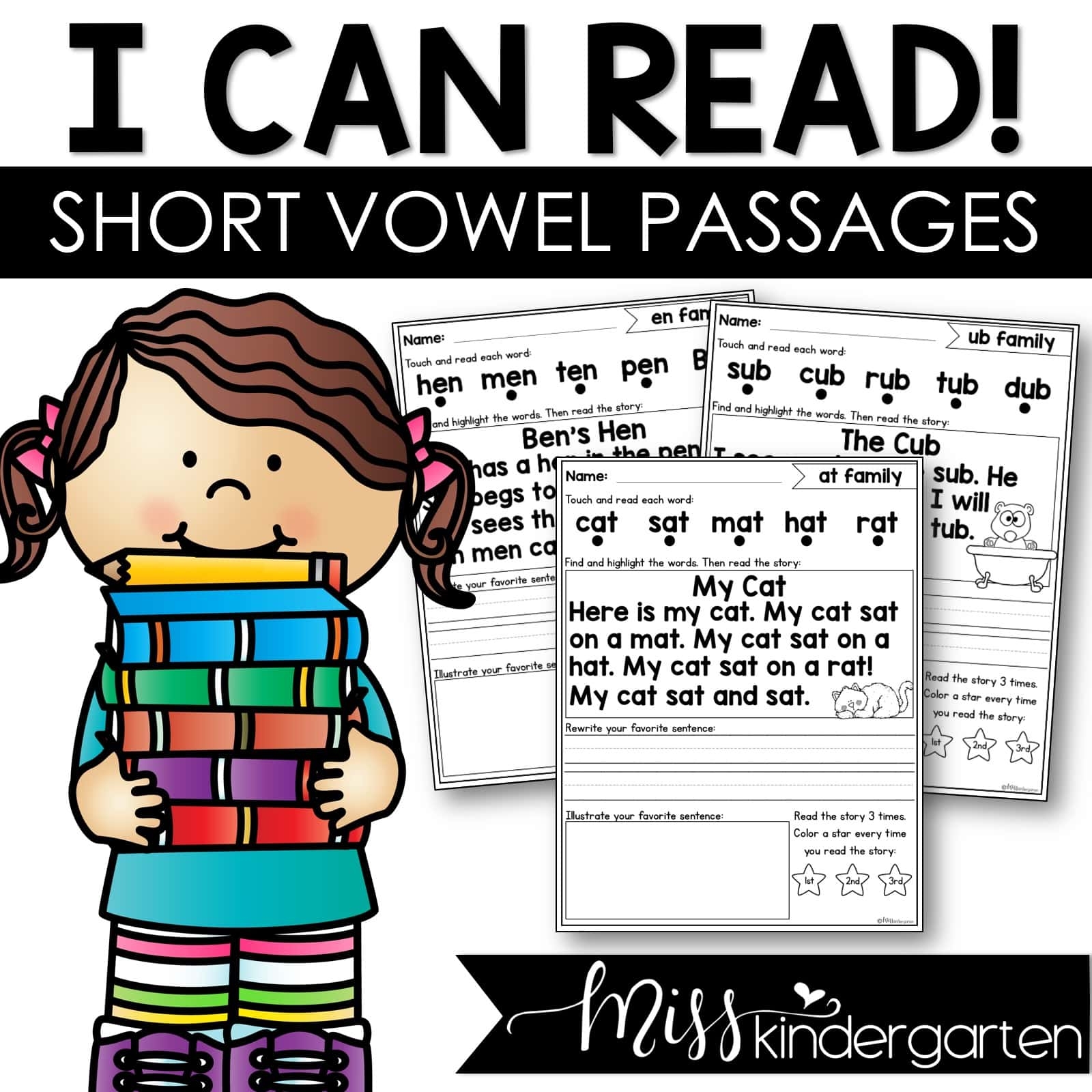 Reading Fluency Passages Short Vowel Words Miss Kindergarten