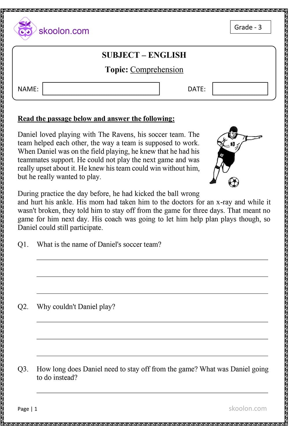 Comprehension Soccer Skoolon