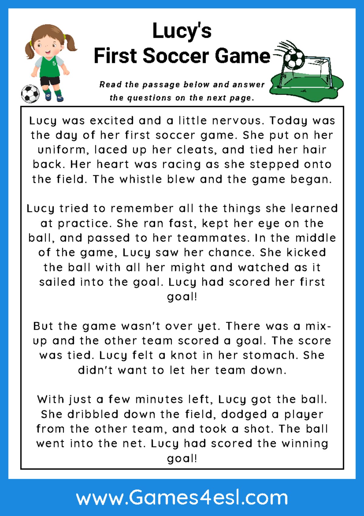 Soccer Reading Comprehension Worksheets Pdf